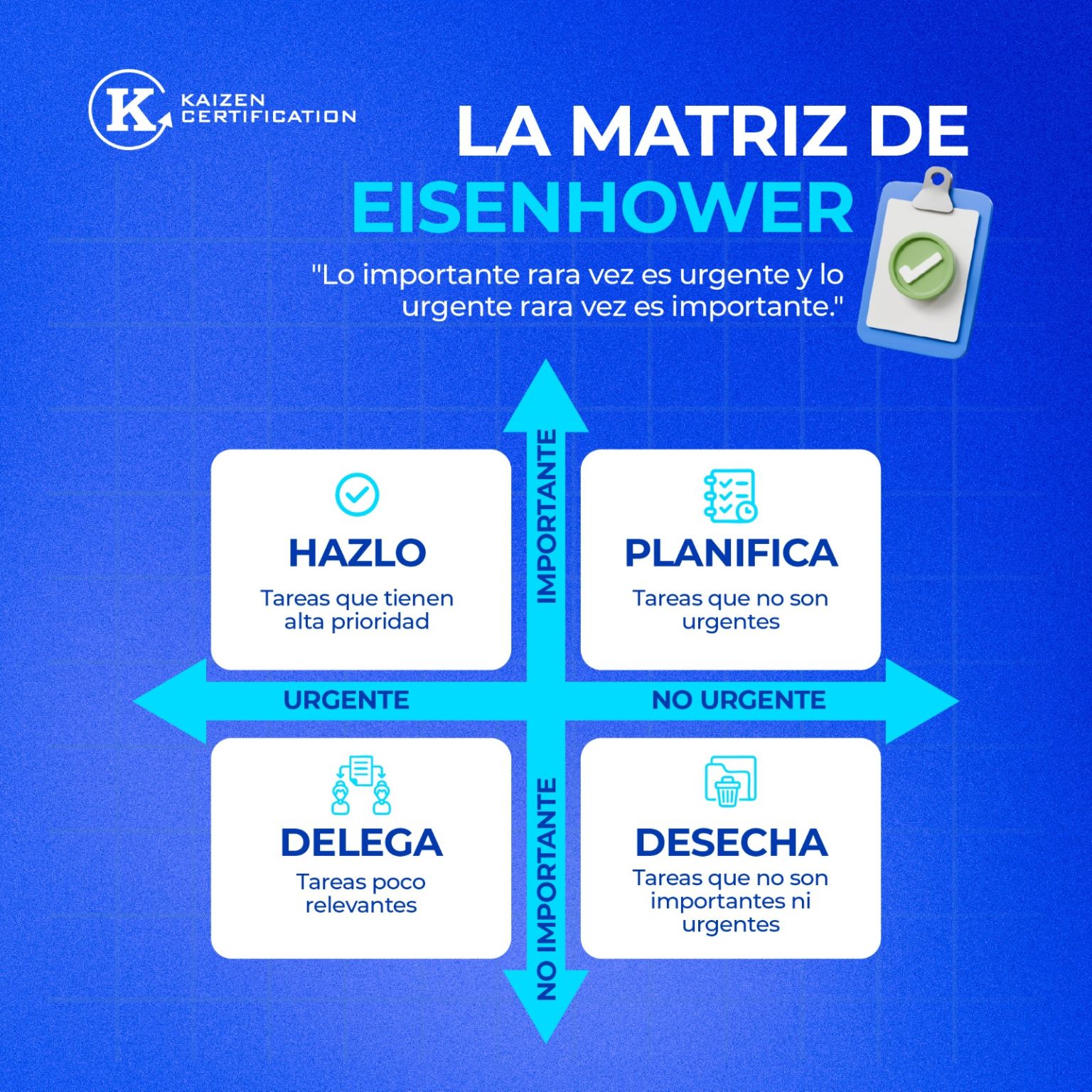 ¿Como priorizar las tareas segun su urgencia e importancia en tu sistema integrado de gestion (SIG) matriz de Eisenhower