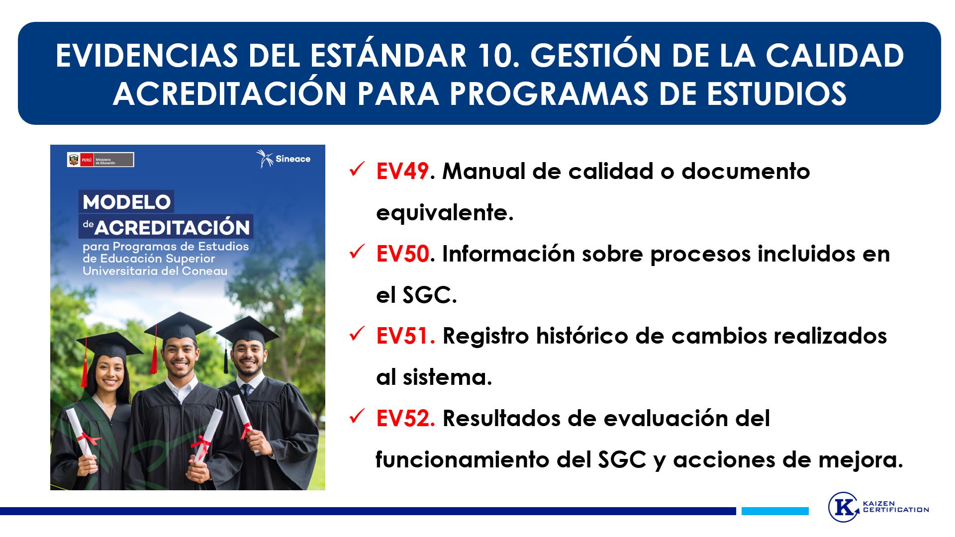 ¿Cuales son las evidencias que dan cumplimiento al standar 10 – Sistema de Gestion de Calidad?
