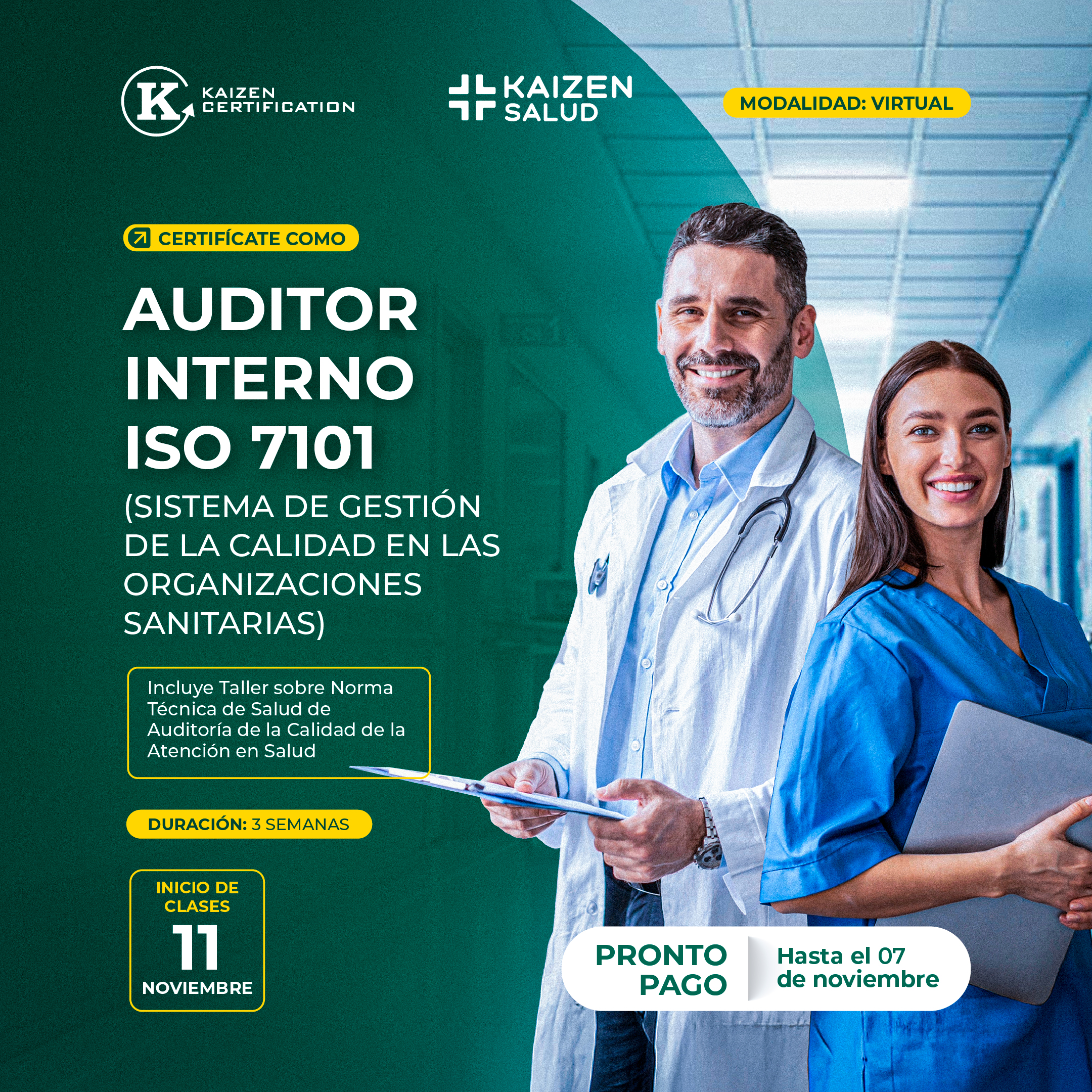 CERTIFÍCATE como AUDITOR INTERNO ISO 7101 (SISTEMA DE GESTIÓN DE LA CALIDAD EN LAS ORGANIZACIONES SANITARIAS)🩺 ¡Prepárate para liderar auditorías en el sector salud! 🏥