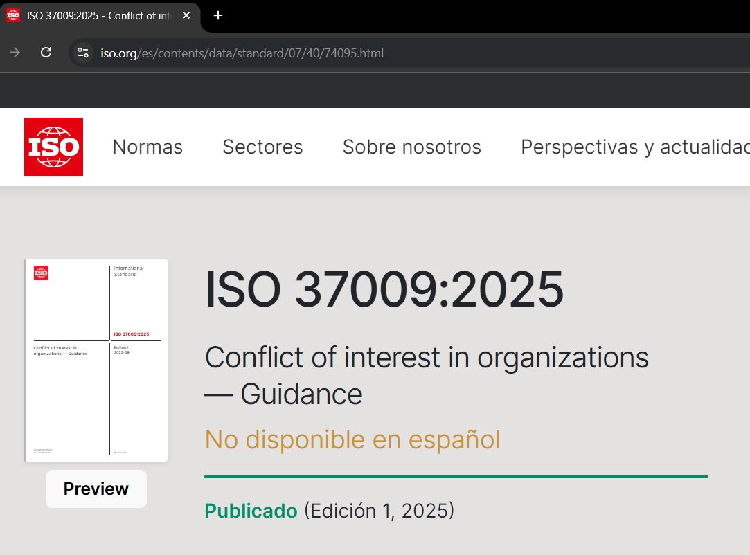 SE PUBLICÓ LA ISO 37009:2025 – GUÍA PARA LA GESTIÓN DE CONFLICTO DE INTERESES EN LAS ORGANIZACIONES